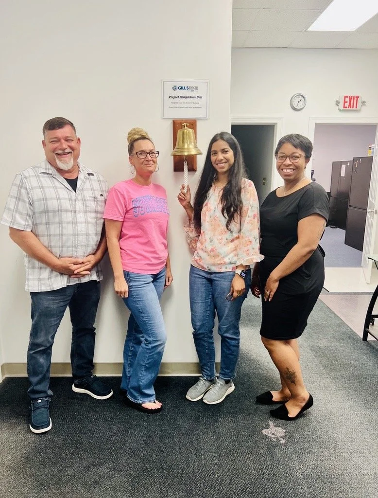 CELEBRATING GREAT WORK, BY GREAT PEOPLE IS A PART OF THE GILL’S ORGANIZATION. WHEN ONE OF OUR TEAMMATES COMPLETES A PROJECT IT IS THEIR OPPORTUNITY TO CELEBRATE AND RING THE BELL.